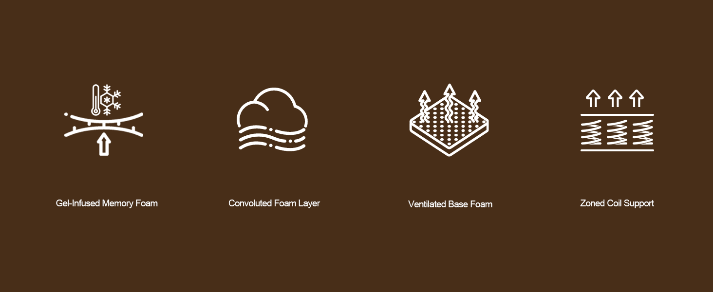 【CLOUD-LIKE CUSHIONING, TARGETED SUPPORT】A perfect blend of 1.5” convoluted foam and precision pocket coils cradles your body, relieving pressure points while maintaining optimal spinal alignment—so you wake up refreshed and ready to take on the day.
